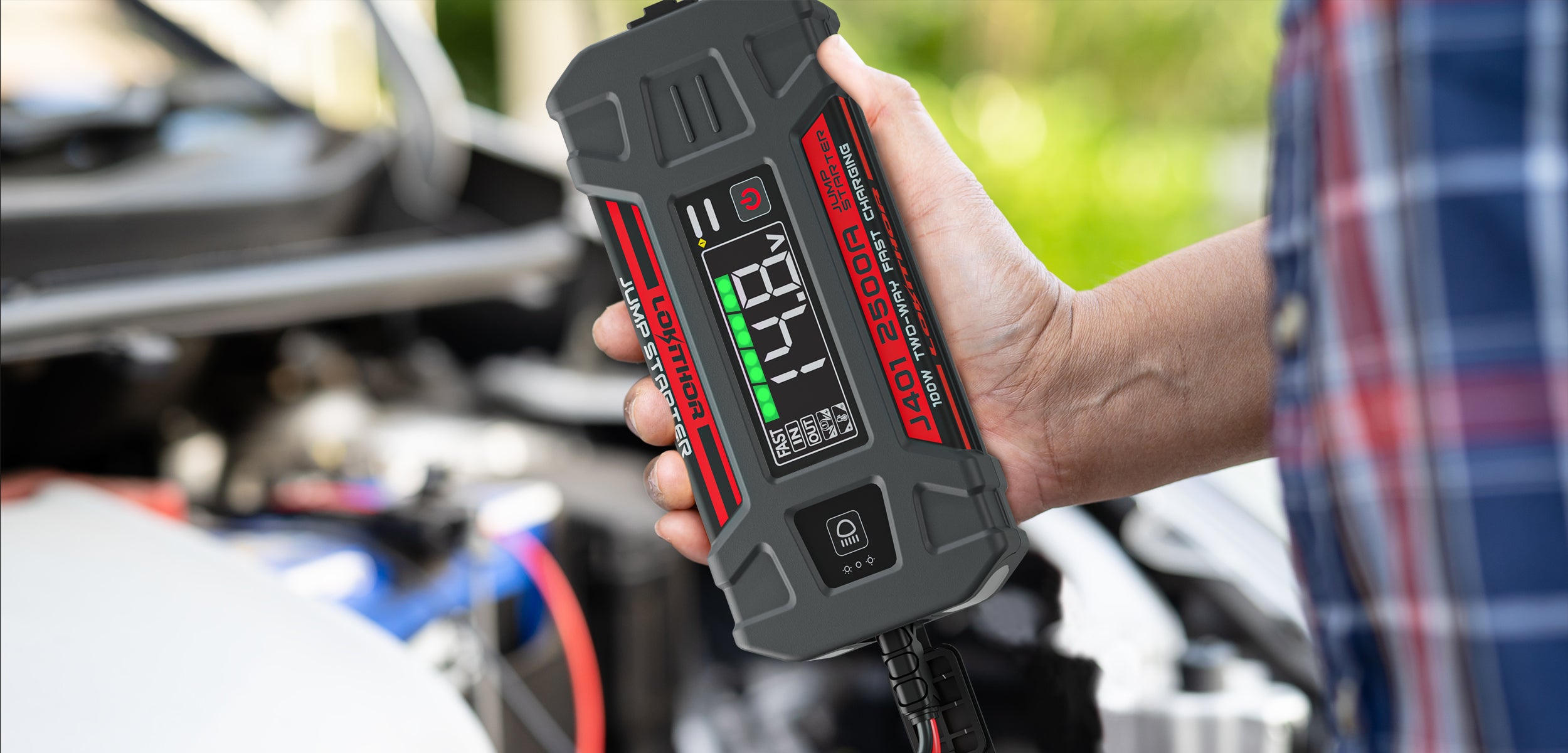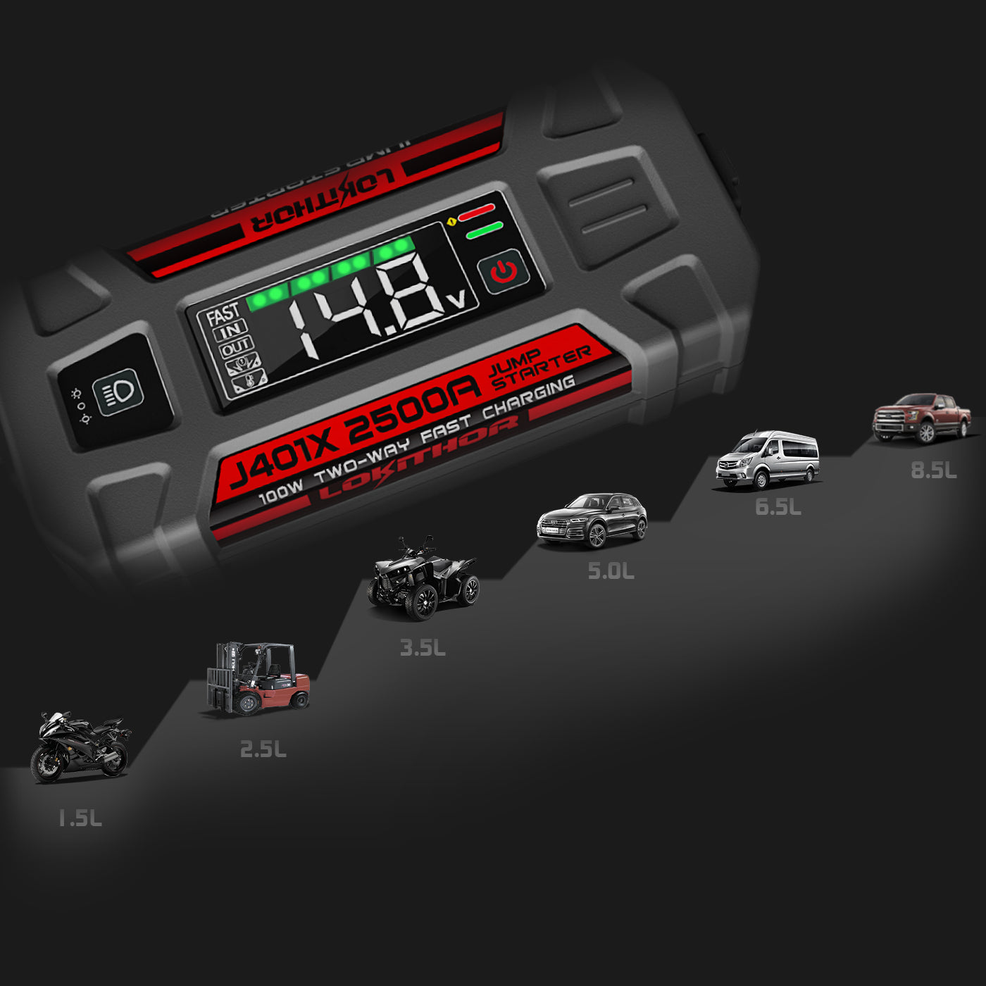 Designed to be compatible with 12V vehicles, the LOKITHOR J series jump boxes for cars are capable of delivering a super start current that can facilitate up to 60 jump-starts with a full charge, ensuring reliable and consistent performance.