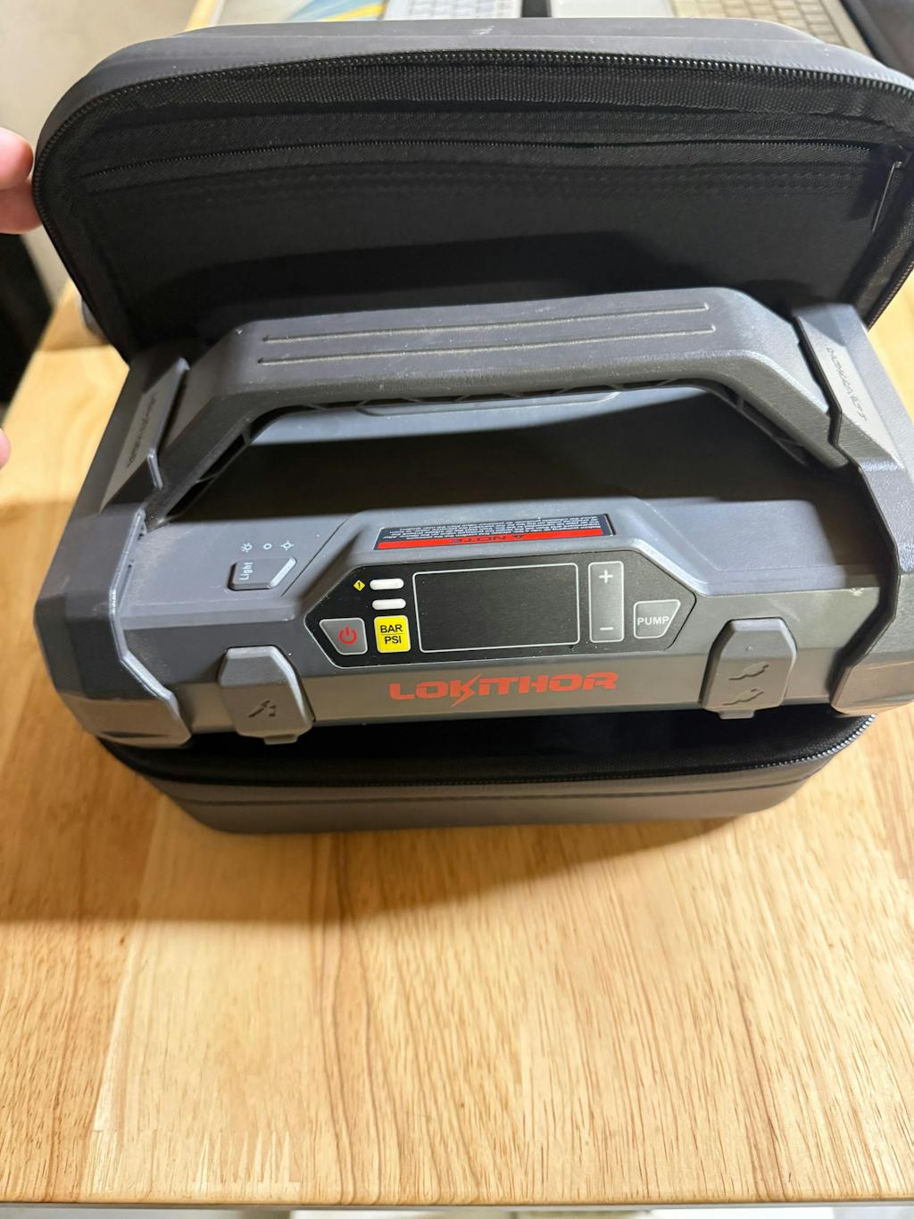 I love the case. It holds my Lokithor jump starter very securely. It’s lightweight but durable. It also very comfortable in your hand. On top of that, it’s attractive looking. My only criticism would be the storage area for the accessories: it’s a zippered area in the inside top of the case. I found it a little difficult to close the case once they were placed inside. This compartment needs to be improved. I’d also prefer if the case were more insulated from extreme temperatures rather than waterproof. I don’t foresee an instance where I have to worry about my jump starter being submerged in water but I do have to worry about very cold temperatures in the winter months if I’d like to store it in my trunk.